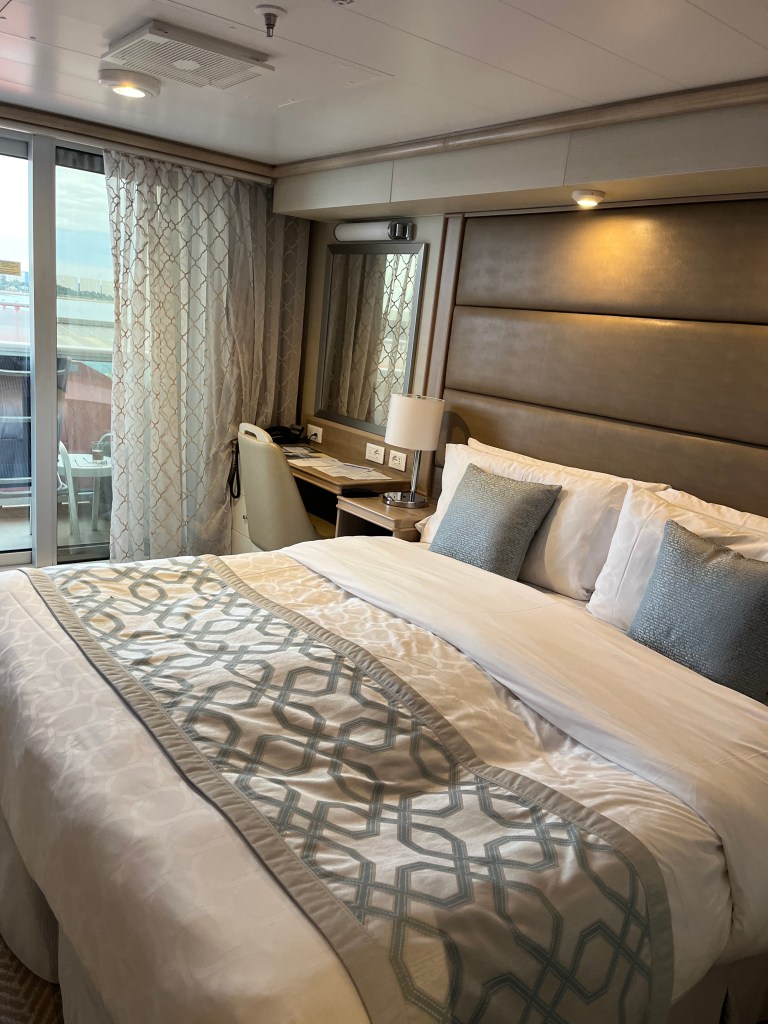 Our stateroom was lovely. A standard room with a comfortable Queen Sized bed and a balcony (with restricted view). In all honesty, we loved our balcony, even though we had number 11 Lifeboat housed just beneath. It was lovely to be able to get fresh air when we needed it and to enjoy the gorgeous evening skies. My daughters were in the cabin next door and we were able to have the partition between the balconies unlocked, making a double balcony. We could pop in and out of each other’s staterooms via the patio doors.