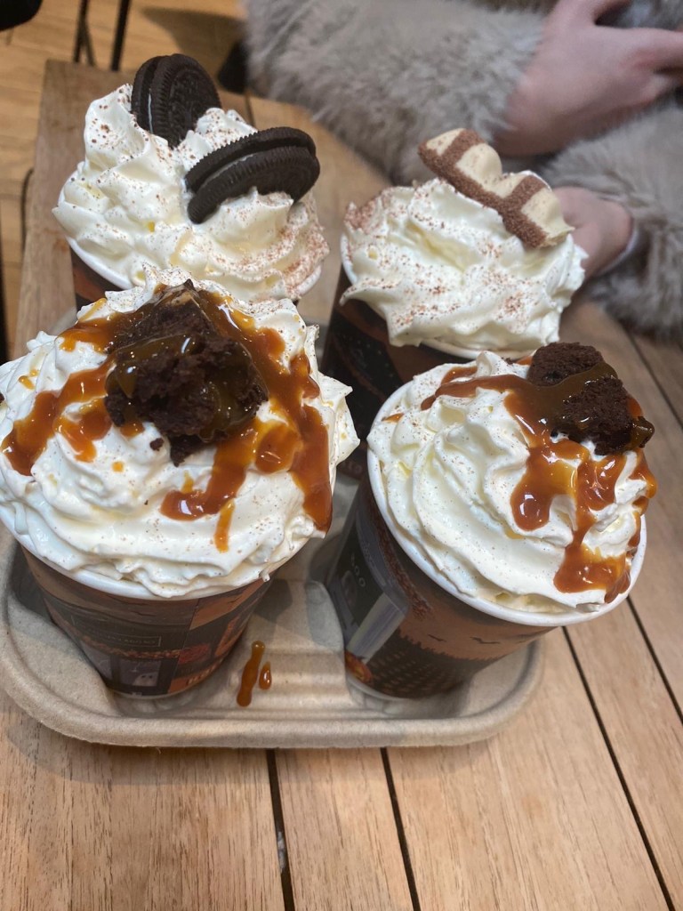 Finally we stopped off at the Farm cafeteria where we enjoyed some rich, sumptuous hot chocolates topped with cream and chocolate sauce.